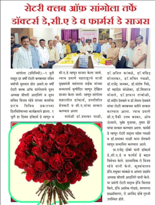 Rotary Club Sangola celebrates doctor day. The doctors of club invi. . .