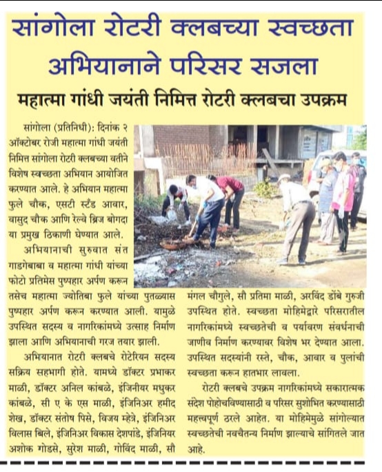 Conducted Cleanliness compaign at Sangola on account of Gandhi jaya. . .