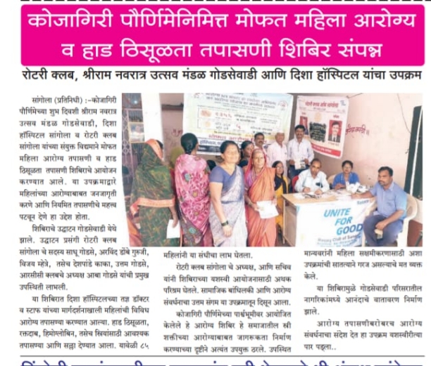 Conducted Blood Check up camp at Harshada lawn Sangola
